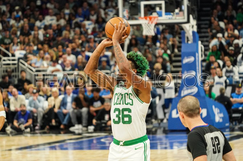 Orlando, Florida, USA, October 22, 2022, Boston Celtics Guard Marcus Smart takes a three point shot during the first half at the Amway Center. (Photo Credit: Marty Jean-Louis)