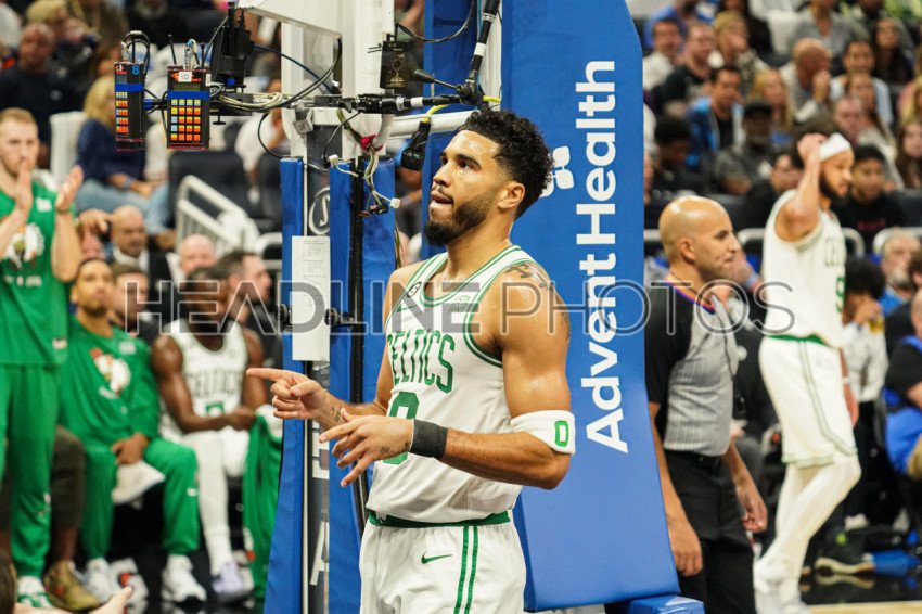 Orlando, Florida, USA, October 22, 2022, Boston Celtics forward Jayson Tatum #0 reacts after making a shot during the first quarter at the Amway Center. (Photo Credit: Marty Jean-Louis)