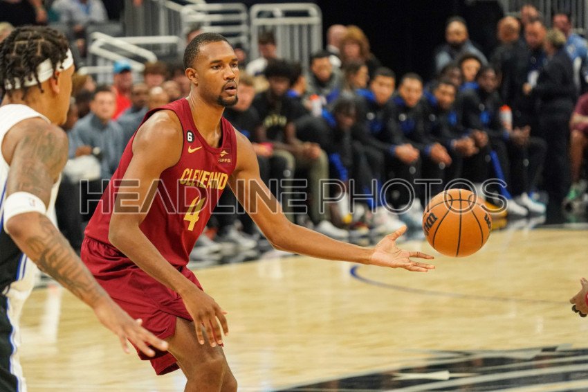 Orlando, Florida, USA, October 14, 2022, Cleveland Cavaliers Center Evan Mobley #4 makes a pass in the first half at the Amway Center. (Photo Credit: Marty Jean-Louis)