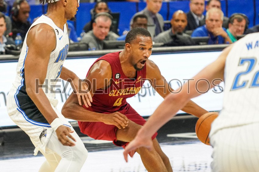 Orlando, Florida, USA, October 14, 2022, Cleveland Cavaliers Center Evan Mobley #4 controls the ball as he moves towards the basket in the first half at the Amway Center. (Photo Credit: Marty Jean-Louis)