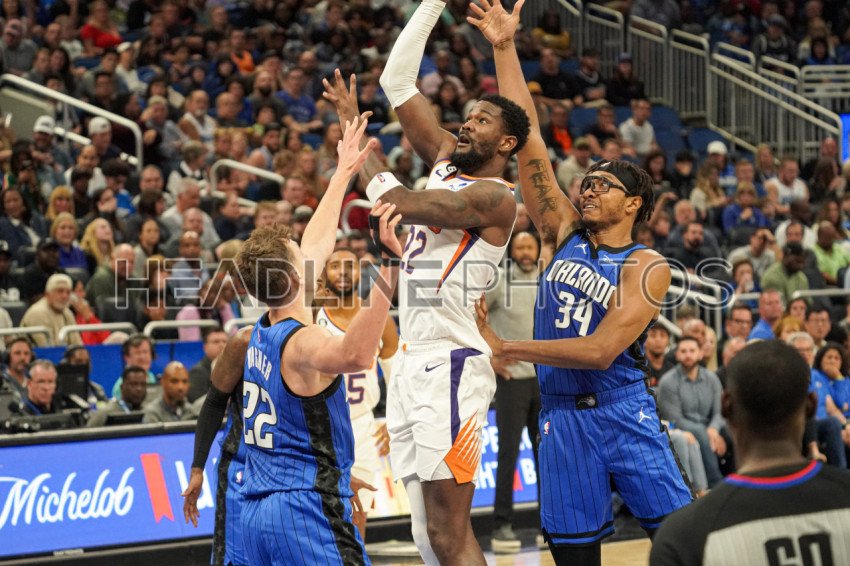 Orlando, Florida, USA, November 7, 2022, Phoenix Suns center Deandre Ayton #22 attempt to make a basket in the fourth quarter at the Amway Center. (Photo Credit: Marty Jean-Louis)