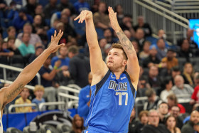 Orlando, Florida, USA, November 9, 2022, Dallas Mavericks Point Guard Luka Doncic #77 attempt to make a basket during the first half at the Amway Center. (Photo Credit: Marty Jean-Louis)