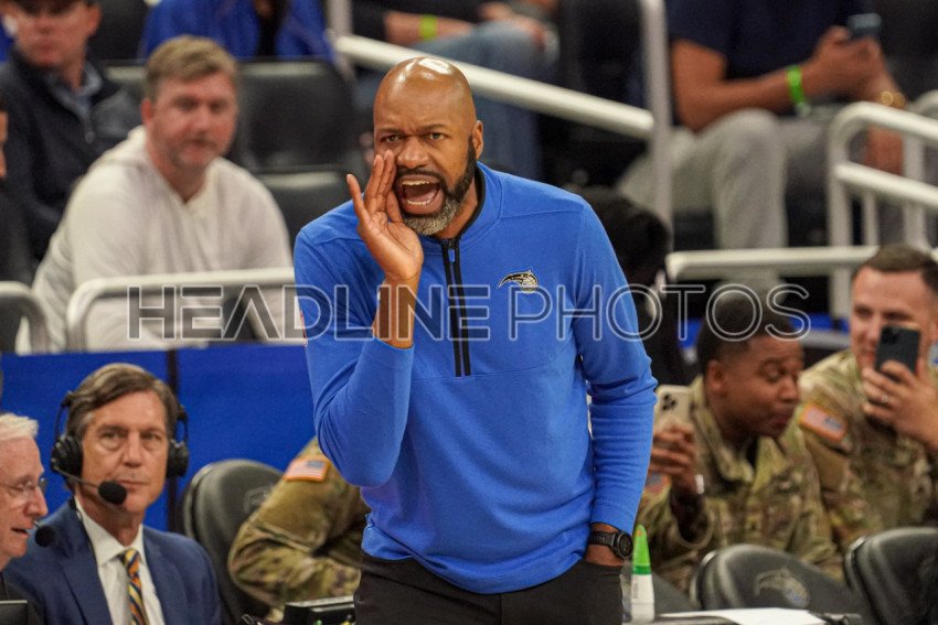 Orlando, Florida, USA, November 9, 2022, Orlando Magic Head Coach Jamahl Mosley giving instructions during the first half at the Amway Center. (Photo Credit: Marty Jean-Louis)