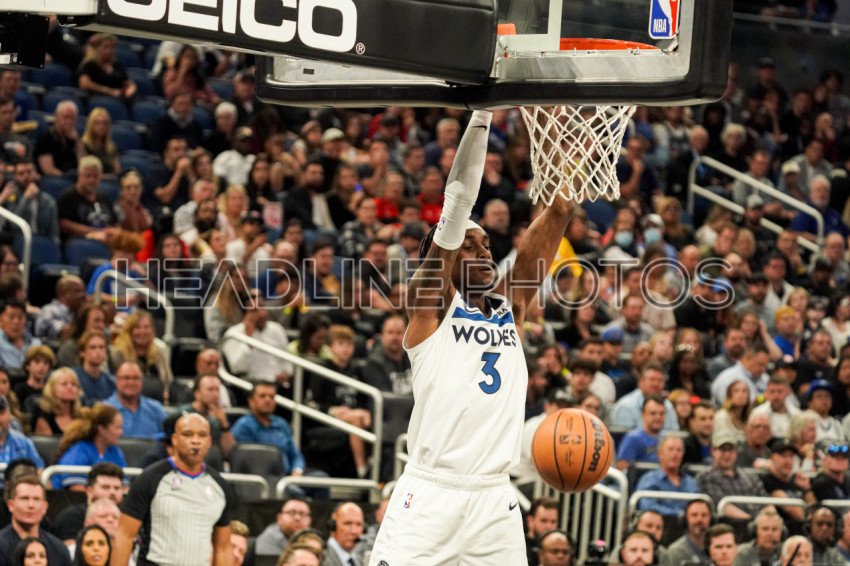 Orlando, Florida, USA, November 16, 2022, Minnesota Timberwolves forward Jaden McDaniels #3 makes a dunk in the first half at the Amway Center. (Photo Credit: Marty Jean-Louis)