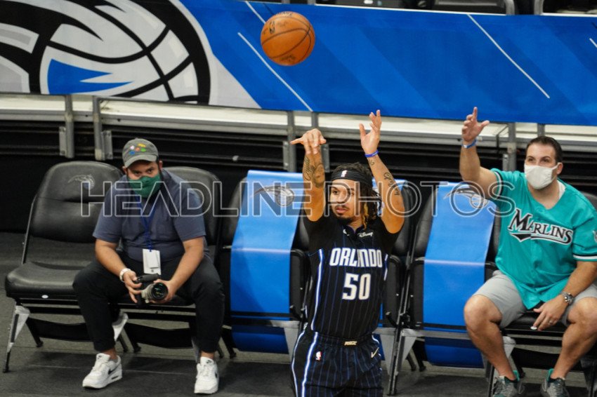 Orlando, Florida, USA, January 25, 2021, Orlando Magic player Cole Anthony #50 takes a 3 point shot at the Amway Center (Photo Credit: Marty Jean-Louis)