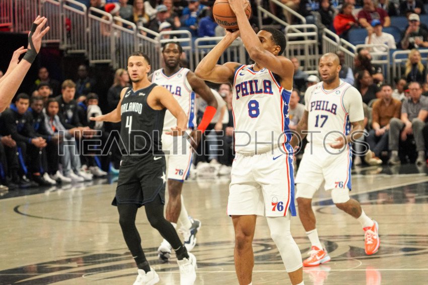 Orlando, Florida, USA, November 25, 2022, Philadelphia 76ers Guard De'Anthony Melton #8 shoots a three in the first half at the Amway Center. (Photo Credit: Marty Jean-Louis)