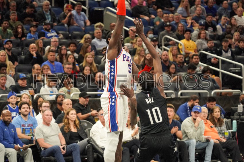 Orlando, Florida, USA, November 25, 2022, Philadelphia 76ers center Montrezl Harrell #5 attempt to make a basket during the first half at the Amway Center. (Photo Credit: Marty Jean-Louis)