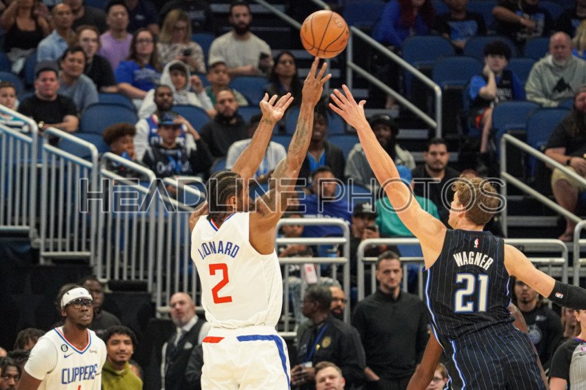Orlando, Florida, USA, December 7, 2022, Los Angeles Clippers forward Kawhi Leonard #2 shoots a three during the first half at the Amway Center. (Photo Credit: Marty Jean-Louis)