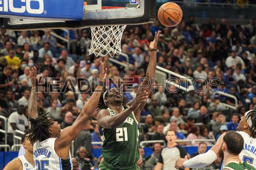 Orlando, Florida, USA, December 5, 2022, Milwaukee Bucks Guard Jrue Holiday #21 attempt to make a basket during the second half at the Amway Center. (Photo Credit: Marty Jean-Louis)