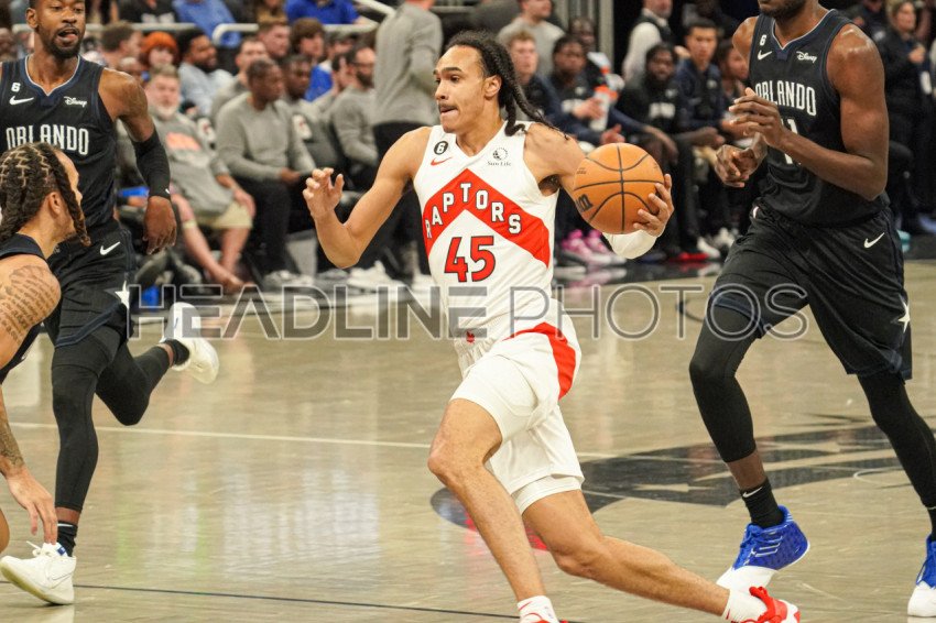 Orlando, Florida, USA, December 11, 2022, Toronto Raptors Guard Dalano Banton #45 rushes towards the basket during the first half at the Amway Center. (Photo Credit: Marty Jean-Louis)