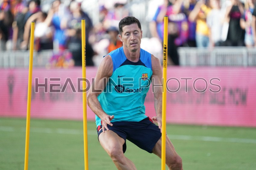 Fort Lauderdale, Florida, USA, July 19, 2022, FC Barcelona player Robert Lewandowski trains before match at DRV PNK Stadium in a Friendly Match. (Photo Credit: Marty Jean-Louis)