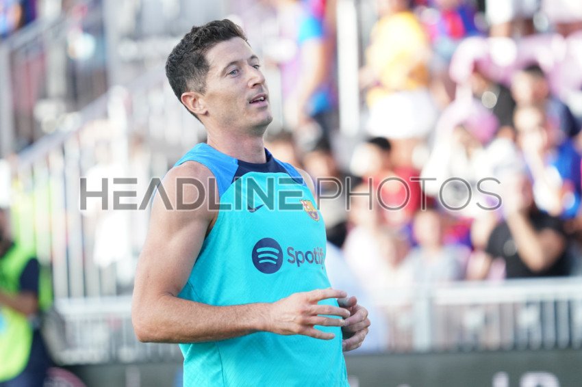 Fort Lauderdale, Florida, USA, July 19, 2022, FC Barcelona player Robert Lewandowski trains before match at DRV PNK Stadium in a Friendly Match. (Photo Credit: Marty Jean-Louis)