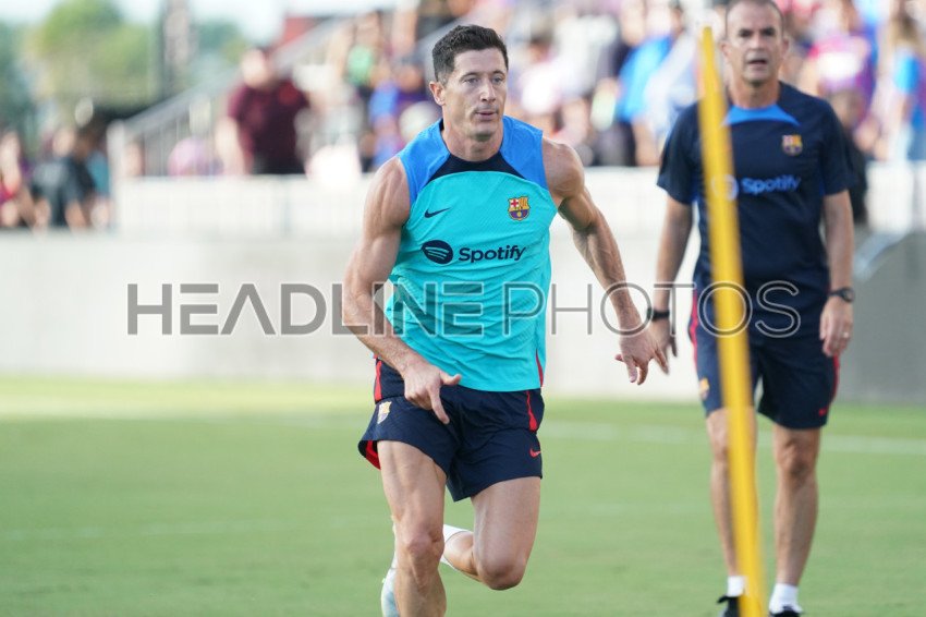 Fort Lauderdale, Florida, USA, July 19, 2022, FC Barcelona player Robert Lewandowski trains before match at DRV PNK Stadium in a Friendly Match. (Photo Credit: Marty Jean-Louis)