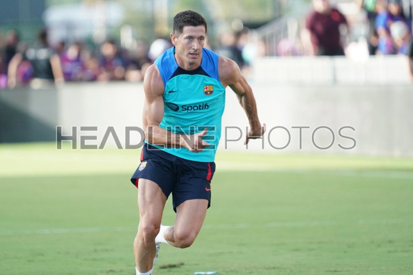 Fort Lauderdale, Florida, USA, July 19, 2022, FC Barcelona player Robert Lewandowski trains before match at DRV PNK Stadium in a Friendly Match. (Photo Credit: Marty Jean-Louis)