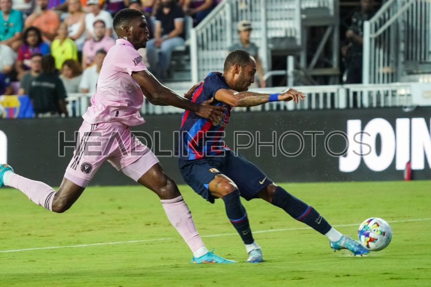 Fort Lauderdale, Florida, USA, July 19, 2022, FC Barcelona forward Pierre-Emerick Aubameyang #25 attempt to make a goal in the first half at DRV PNK Stadium in a Friendly Match. (Photo Credit: Marty Jean-Louis)