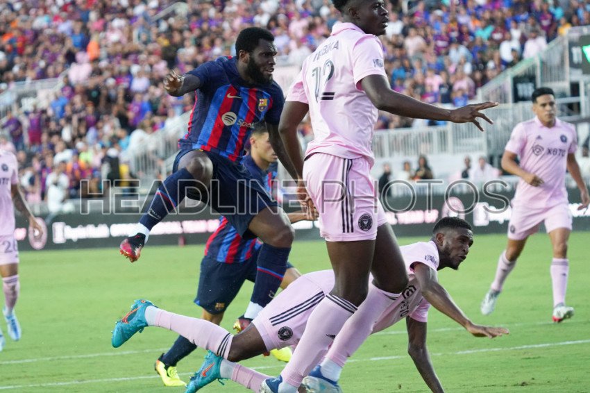 Fort Lauderdale, Florida, USA, July 19, 2022, FC Barcelona Midfielder Franck Kessié #19 attempt to score against Inter Miami at DRV PNK Stadium in a Friendly Match. (Photo Credit: Marty Jean-Louis)