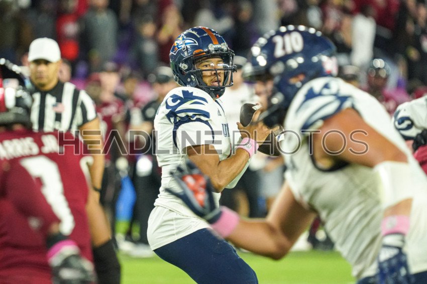 Orlando, Florida, USA, December 16, 2022, USTA Roadrunners quaterback Frank Harris #0 looks to make a pass in the second half at Exploria Stadium. (Photo Credit: Marty Jean-Louis)