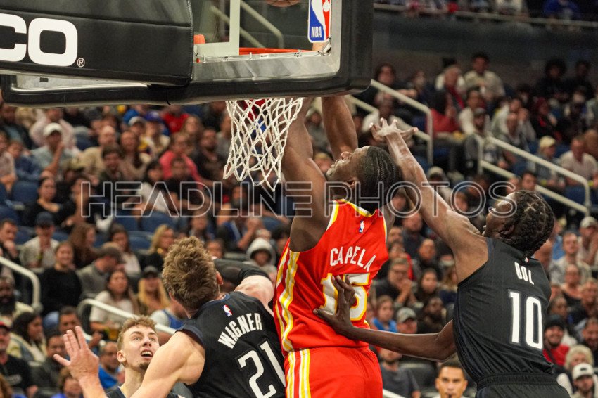 Orlando, Florida, USA, December 14, 2022, Atlanta Hawks center Clint Capela #15 attempt to make a basket in the first half at the Amway Center. (Photo Credit: Marty Jean-Louis)