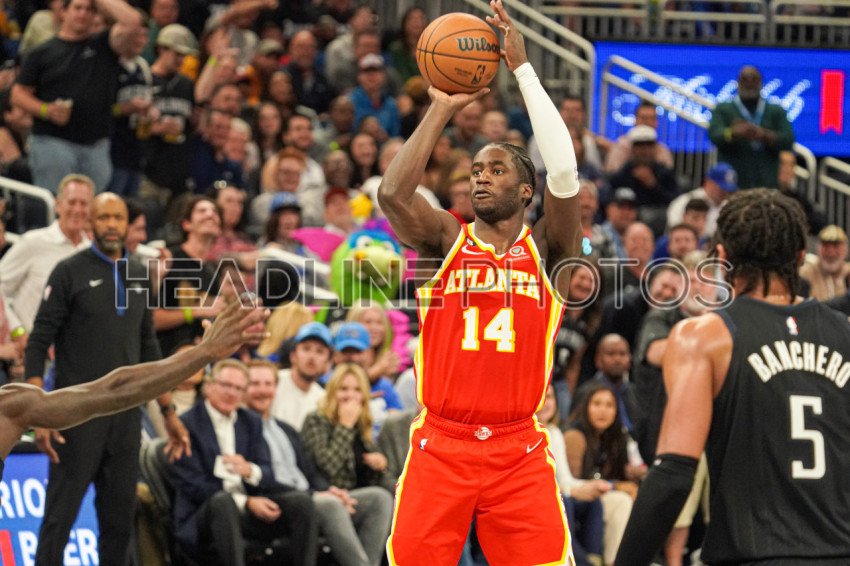 Orlando, Florida, USA, December 14, 2022, Atlanta Hawks forward AJ Griffin #14 shoots a three in the second quarter at the Amway Center. (Photo Credit: Marty Jean-Louis)