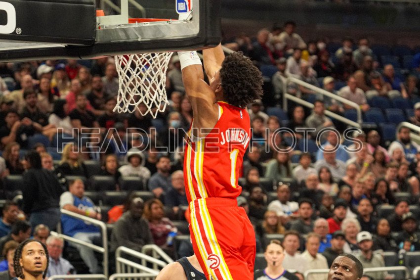 Orlando, Florida, USA, December 14, 2022, Atlanta Hawks forward Jalen Johnson #1 makes a dunk during the first half at the Amway Center. (Photo Credit: Marty Jean-Louis)