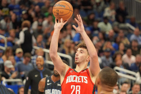 Orlando, Florida, USA, November 7, 2022, Houston Rockets Center Alperen Sengun #28 attempt to make a basket in the first half at the Amway Center. (Photo Credit: Marty Jean-Louis)