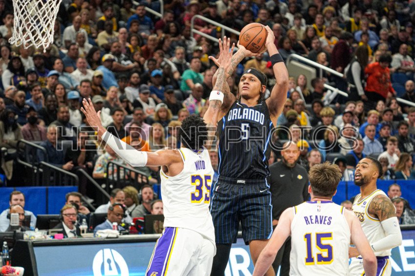 Orlando, Florida, USA, November 4, 2023, Orlando Magic player Paolo Banchero #5 shoots a three in the fourth quarter at the Amway Center. (Photo Credit: Marty Jean-Louis)