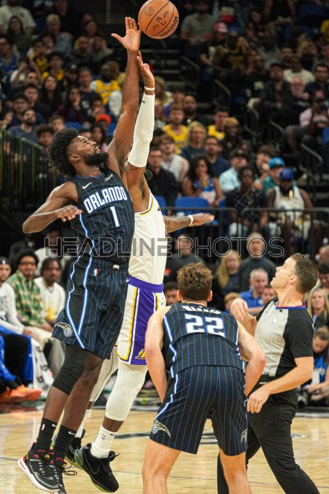 Orlando, Florida, USA, November 4, 2023, Orlando Magic's Jonathan Isaac #1 wins the ball during the jump ball at the Amway Center. (Photo Credit: Marty Jean-Louis)
