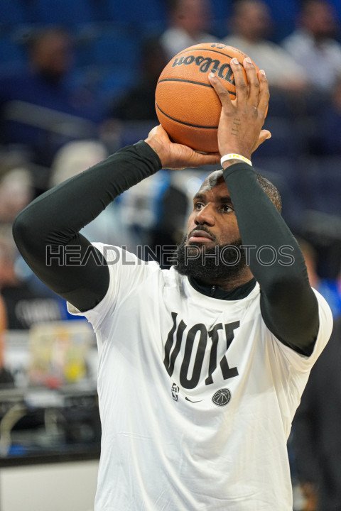 Orlando, Florida, USA, November 4, 2023, Los Angeles Lakers small forward Lebron James #23 warms up at the Amway Center. (Photo Credit: Marty Jean-Louis)