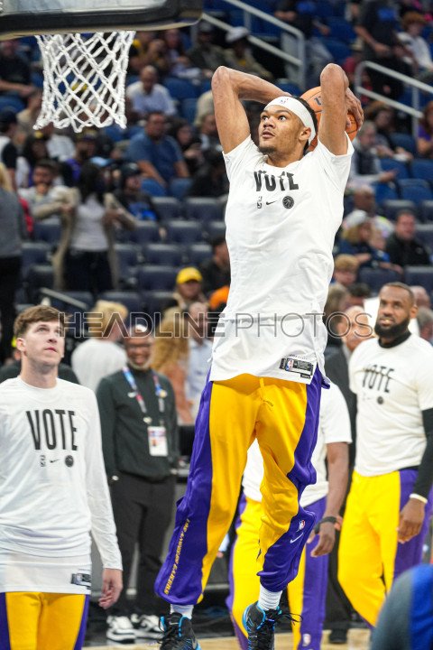 Orlando, Florida, USA, November 4, 2023, Los Angeles Lakers forward Alex Fudge #17 makes a dunk during warm up at the Amway Center. (Photo Credit: Marty Jean-Louis)