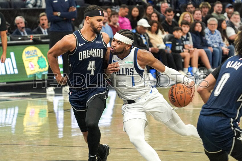 Orlando, Florida, USA, November 6, 2023, Dallas Mavericks player Jaden Hardy #1 fights his way forward in the first half at the Amway Center. (Photo Credit: Marty Jean-Louis)