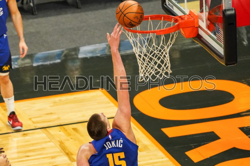 Orlando, Florida, USA, March 23, 2021, Denver Nuggets Nikola Jokic #15 makes a basket against the Orlando Magic at the Amway Center (Photo Credit: Marty Jean-Louis)