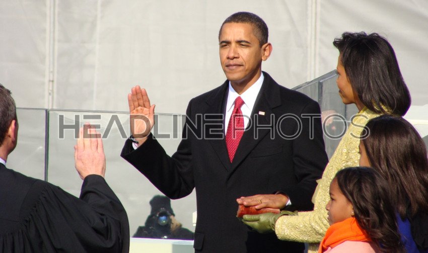 Obama swearing in. Barack Obama was sworn in as th President of United States on Tuesday Jan at the Capitol Building Obama took the oath of office with his hand on the Lincoln Bible and later addressed an estimated crowd of million