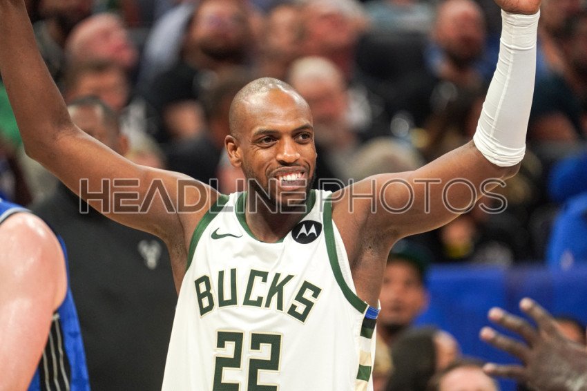 Orlando, Florida, USA, November 11, 2023, Milwaukee Bucks forward Khris Middleton smiling at the Amway Center. (Photo Credit: Marty Jean-Louis)