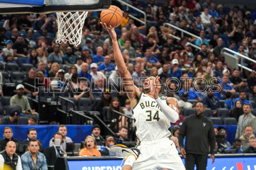 Orlando, Florida, USA, November 11, 2023, Milwaukee Bucks forward Giannis Antetokounmpo #34 makes a layup during the second half at the Amway Center. (Photo Credit: Marty Jean-Louis)