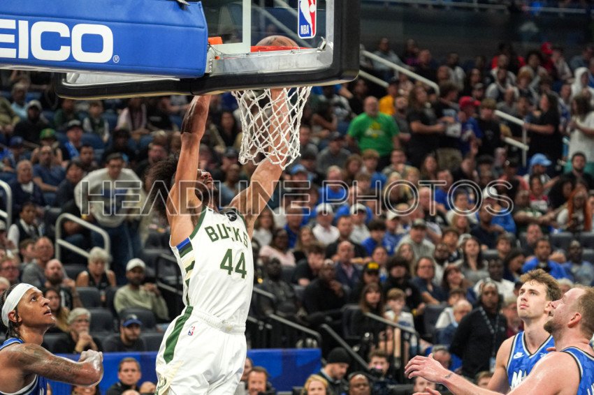 Orlando, Florida, USA, November 11, 2023, Milwaukee Bucks player Andre Jackson #44 makes a dunk in the second half at the Amway Center. (Photo Credit: Marty Jean-Louis)