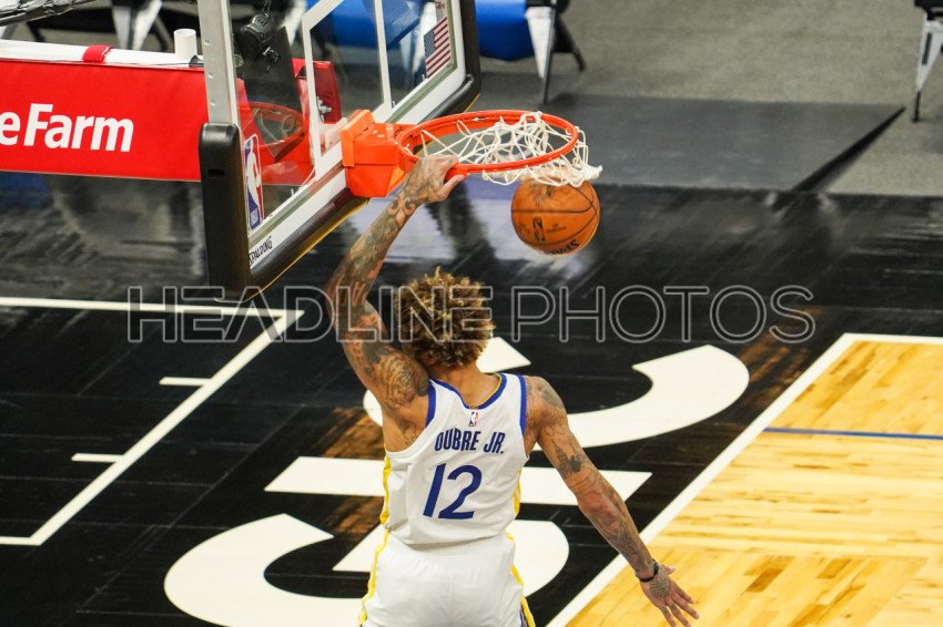 Orlando, Florida, USA, February 19, 2021, Golden State Warriors' Kelly Oubre #12 makes a dunk against the Orlando Magic at the Amway Center (Photo Credit: Marty Jean-Louis)