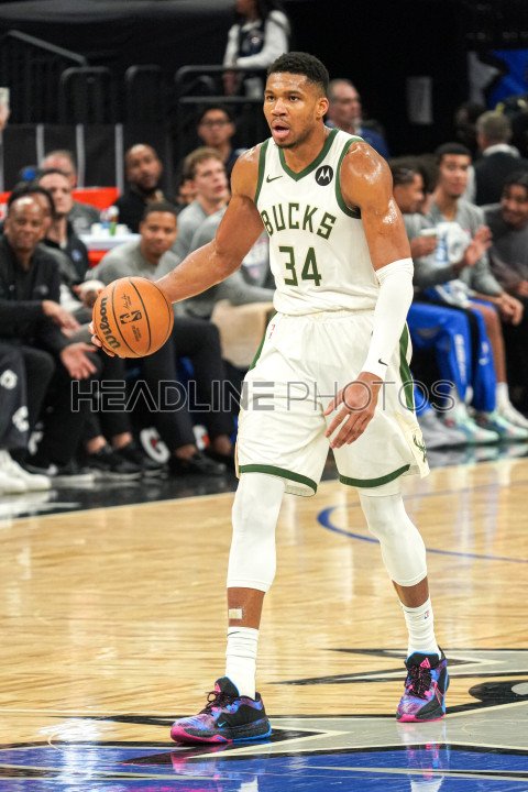 Orlando, Florida, USA, November 11, 2023, Milwaukee Bucks forward Giannis Antetokounmpo #34 pushes forward during the second half at the Amway Center. (Photo Credit: Marty Jean-Louis)
