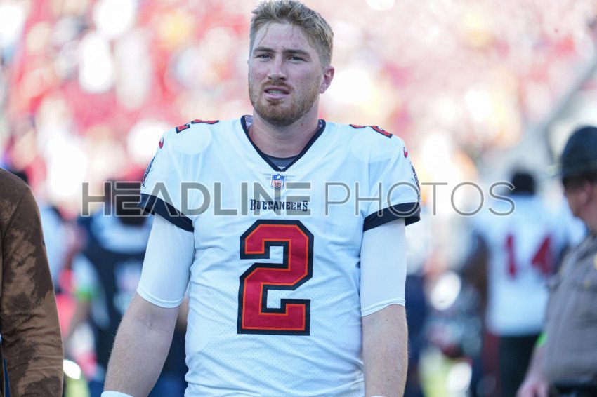 Tampa Bay, Florida, USA, November 12, 2023, Tampa Bay Buccaneers quarterback Kyle Trask #2 at Raymond James Stadium. (Photo Credit: Marty Jean-Louis)