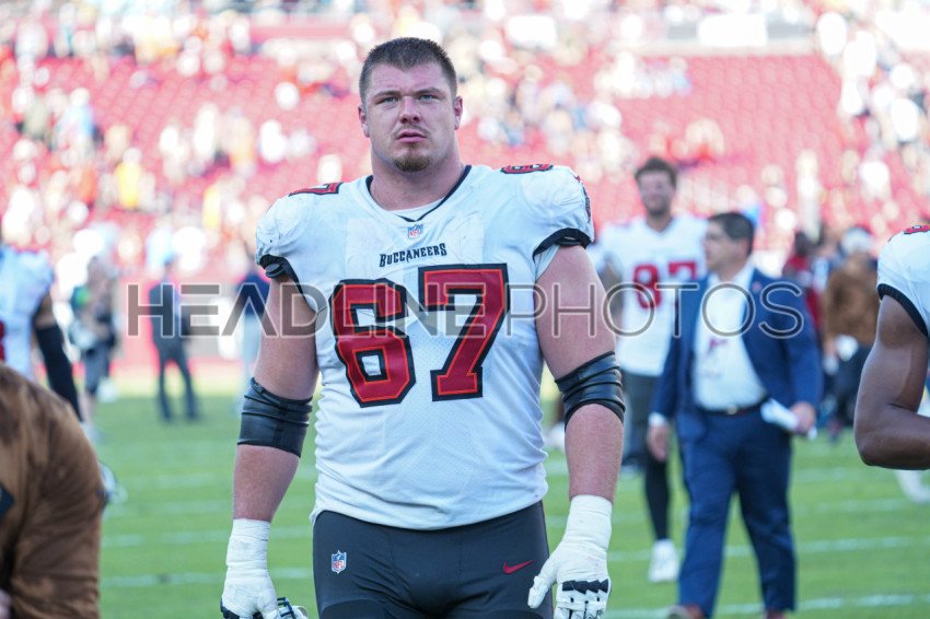 Tampa Bay, Florida, USA, November 12, 2023, Tampa Bay Buccaneers player Luke Goedeke #67 at Raymond James Stadium. (Photo Credit: Marty Jean-Louis)