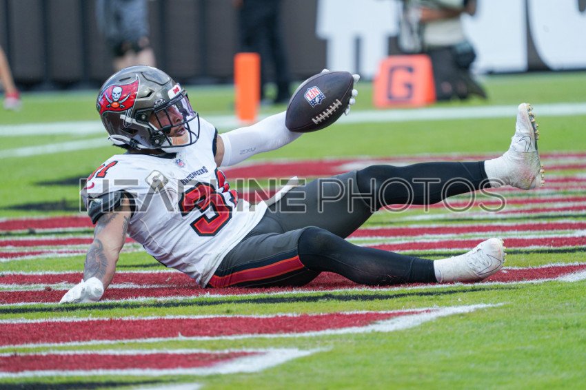 Tampa Bay, Florida, USA, November 12, 2023, Tampa Bay Buccaneers player Antoine Winfield Jr #31 celebrate after making an interception at Raymond James Stadium. (Photo Credit: Marty Jean-Louis)