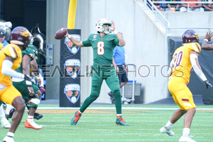 Orlando, Florida, USA, November 18, 2023, Florida A&M quarterback Jeremy Moussa #8 makes a pass during the Florida Classics at Camping World Stadium. (Photo Credit: Marty Jean-Louis)