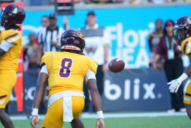Orlando, Florida, USA, November 18, 2023, Bethune-Cookman quarterback Walter Simmons III #8 makes a pass during the Florida Classics at Camping World Stadium. (Photo Credit: Marty Jean-Louis)