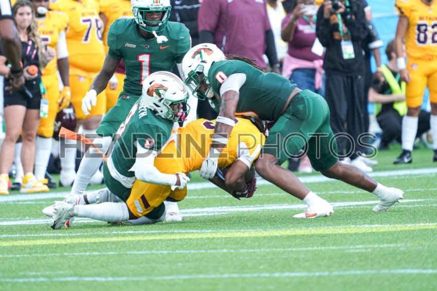 Orlando, Florida, USA, November 18, 2023, Bethune-Cookman player Tink Boyd #3 gets tackled during the Florida Classics at Camping World Stadium. (Photo Credit: Marty Jean-Louis)