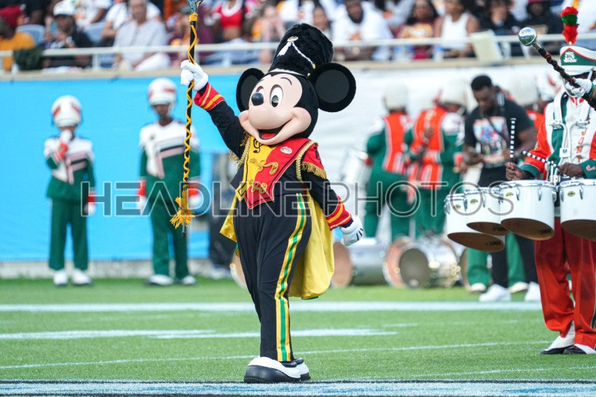 Orlando, Florida, USA, November 18, 2023, Disney's Mickey Mouse performs during the half time game between Florida A&M and Bethune-Cookman during the Florida Classics at Camping World Stadium. (Photo Credit: Marty Jean-Louis)