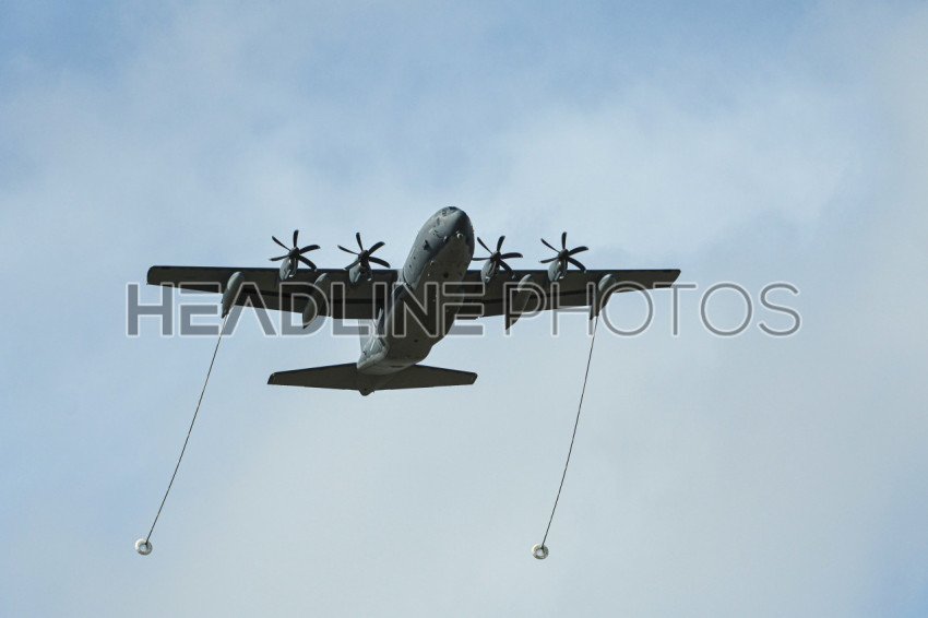 A C-130J Super Hercules plane shows off the ability to refuel planes mid-air during the Lockheed Martin Space and Air Show on Sunday November 1, 2020 at the Orlando Sanford Airport in Sanford Florida. Photo Credit: Marty Jean-Louis