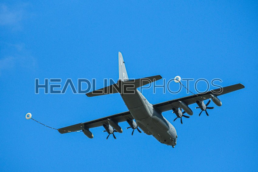 A C-130J Super Hercules plane shows off the ability to refuel planes mid-air during the Lockheed Martin Space and Air Show on Sunday November 1, 2020 at the Orlando Sanford Airport in Sanford Florida. Photo Credit: Marty Jean-Louis