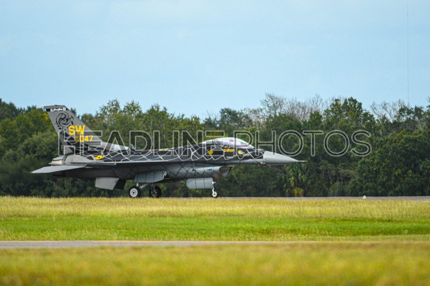 An F-16 Viper lands during the Lockheed Martin Space and Air Show on Sunday November 1, 2020 at the Orlando Sanford Airport in Sanford Florida. Photo Credit: Marty Jean-Louis