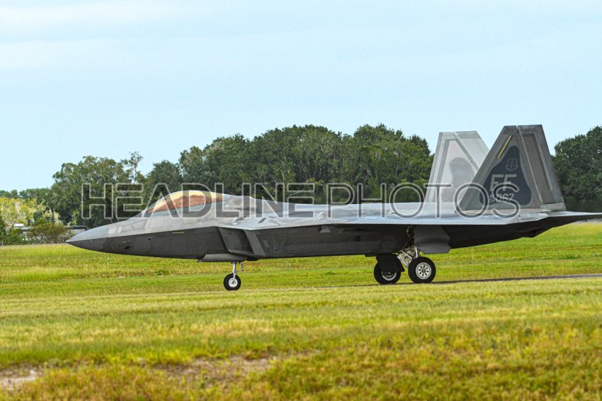 An F22 Rapto lands during the Lockheed Martin Space and Air Show on Sunday November 1, 2020 at the Orlando Sanford Airport in Sanford Florida. Photo Credit: Marty Jean-Louis
