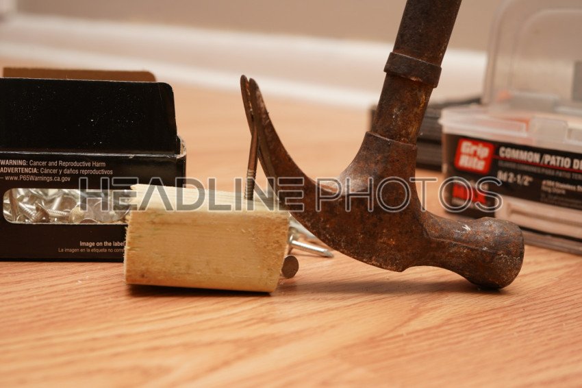 Hammer and nails being used for a home construction project. Photo Credit: Marty Jean-Louis