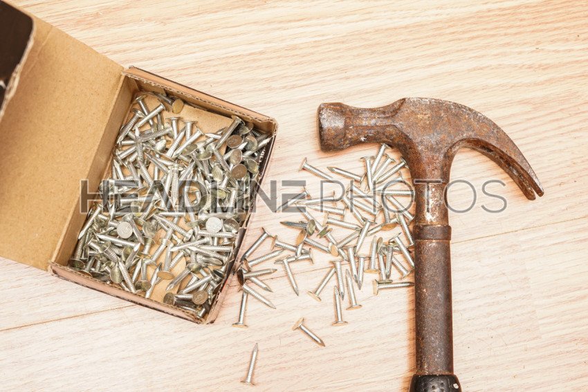 Hammer and nails being used for a home construction project. Photo Credit: Marty Jean-Louis